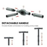 ⚙️ A T-alakú racsnis nyél fokozott erőkart és kényelmet biztosít hosszan tartó használat során, megkönnyítve a munkát