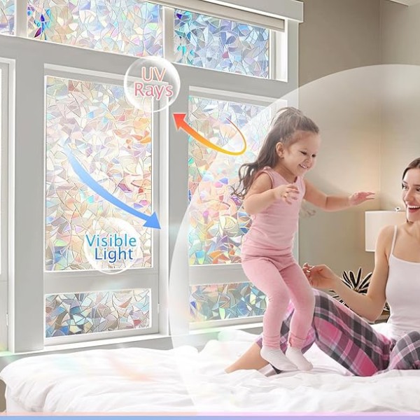 A szivárványhatáson kívül a fólia matt vagy texturált üveg megjelenést kölcsönöz, így ablakai modern, stílusos frissítést kapnak az új üveg költségei nélkül.