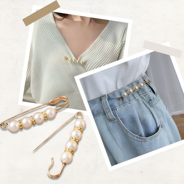 💎 Gyöngyös szépség: Ez a fehér és arany színű műgyöngyökkel díszített melltű népszerű gyöngyös elemeket tartalmaz, egy csipetnyi csillogást kölcsönözve megjelenésének.