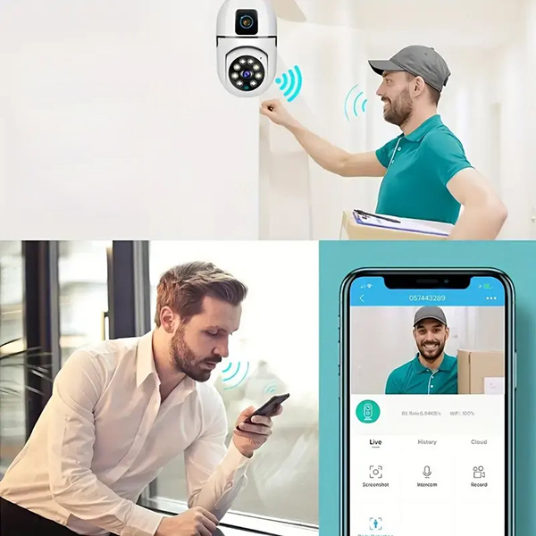A BULBCAM intercom hangszórójával közvetlenül a mobilon keresztül beszélhet bárkivel, aki az ajtó előtt áll. Utasításokat is adhat a kézbesítőknek, vagy akár irányíthatja a vendégeket, ha éppen elfoglalt vagy távol van, így bárhonnan könnyen kezelheti a látogatókat.