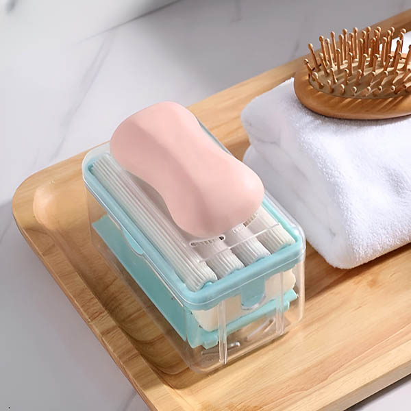 🧼🧽 Könnyítse meg a ruhák kézi mosását a 2 az 1-ben szappanadagolóval! Ez a sokoldalú készülék fogazott görgővel rendelkezik a habzás és a hatékony tisztítás érdekében, emellett gyengéd bőrhámlasztóként is működik. 🌸