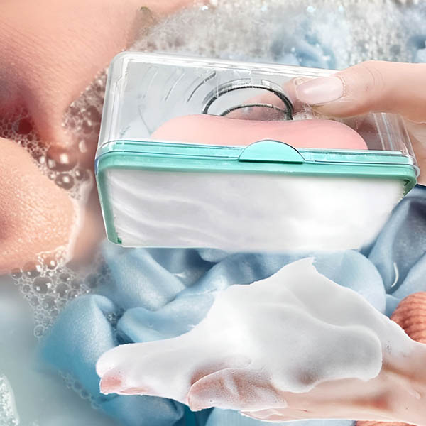 A fogazott szárral ellátott görgő nemcsak a ruhák tisztítását segíti, hanem a bőrön használva gyengéd hámlasztást és masszázst is nyújt. Egyszerűen helyezzen szappant a tartályba, hogy élvezze az extra masszázs és hámlasztó hatást. Ez segít eltávolítani az elhalt hámsejteket és javítja a vérkeringést, ami további sokoldalúságot biztosít.