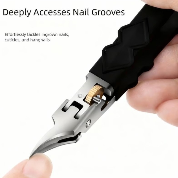 A precíz acélhegyek mélyen a barázdákba hatolnak, hogy tisztán levágják a benőtt körmöket.