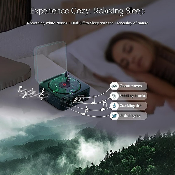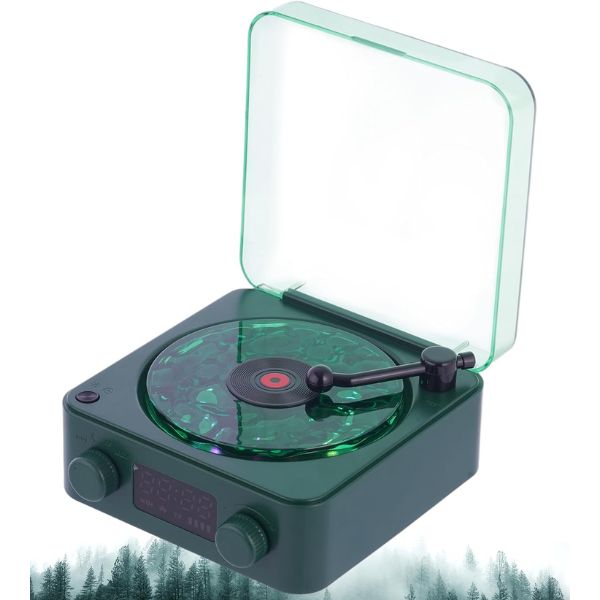 A retró bakelit lejátszó megjelenése klasszikus stílust kölcsönöz az íróasztalodnak vagy az éjjeliszekrényednek.