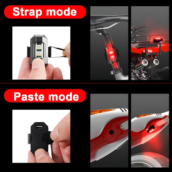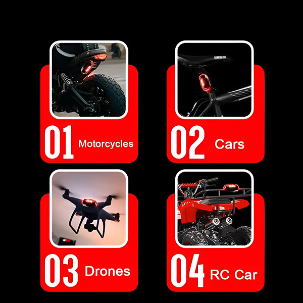 Ezek a lámpák hihetetlenül sokoldalúak, és úgy tervezték, hogy illeszkedjenek autókhoz, motorkerékpárokhoz, kerékpárokhoz és drónokhoz. Válasszon a tépőzáras és a gumigyűrűs szerelési módszerek közül a biztonságos és egyszerű telepítés érdekében. Nincs szükség bonyolult szerszámokra vagy szakmai segítségre.