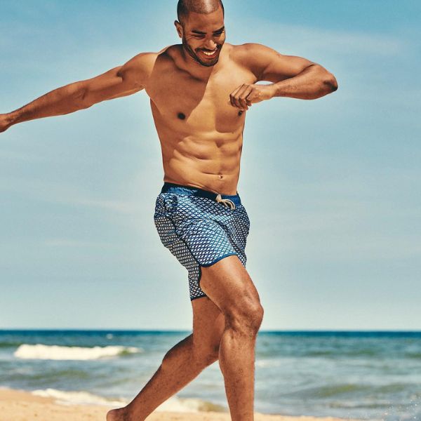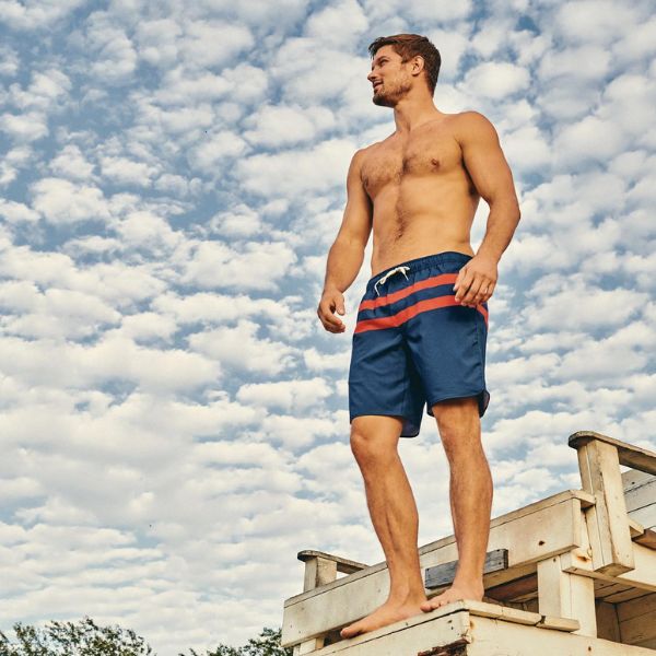 A 88%-ban újrahasznosított poliészterből és 12% spandexből készült fürdőnadrágunk nemcsak kényelmes, hanem környezetbarát is.