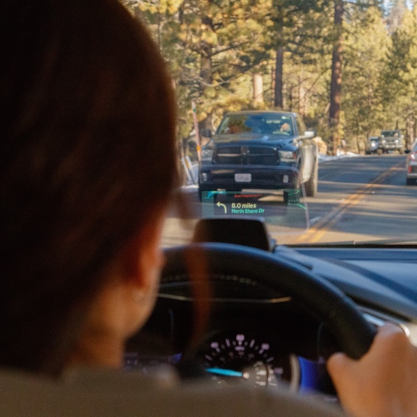 A környezeti fényérzékelőnek köszönhetően a telefonértesítések és adatok tisztán vetülnek a szélvédőre, így mindig tájékozott maradsz anélkül, hogy bármi elvonná a figyelmed.
