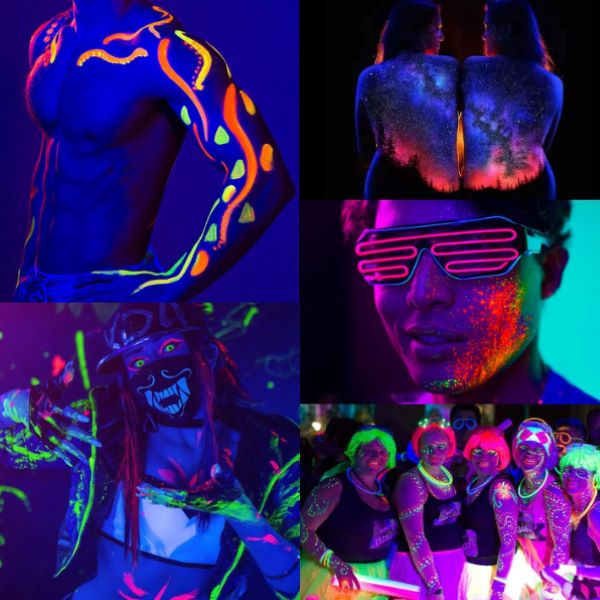 A NEONGLAM sminkje gazdag pigmentáltságot és könnyű felviteli folyamatot kínál. Csak nedvesítsd meg az ecsetet vagy a szivacsot, mártsd őket a festékbe, és könnyen érj el egy magával ragadó UV megjelenést.